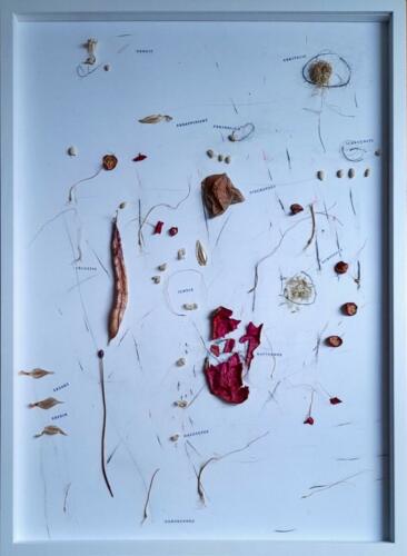 Mit Früchten, Knochen und Gräten, mit Blättern, Samen und Körnern, mit Muscheln, Wurzeln und Knollen entstehen filigrane und kompakte neue Formationen.